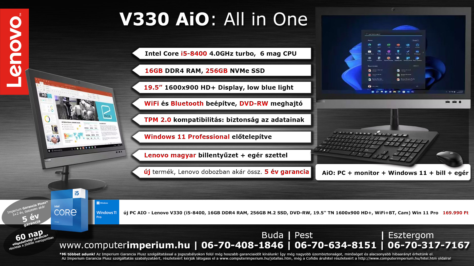 új PC AIO - Lenovo V330 (i5-8400, 16GB RAM, 256GB