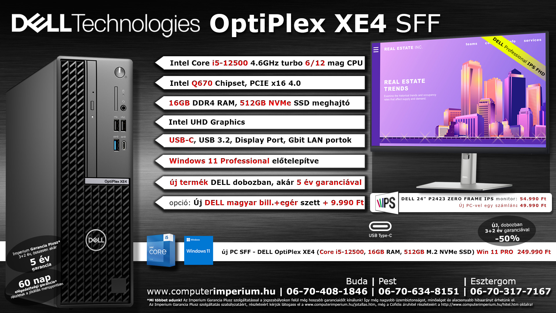 új PC SFF - DELL Optiplex XE4 (i5-12500, 16GB DDR4 RAM, 512GB M.2 NVMe